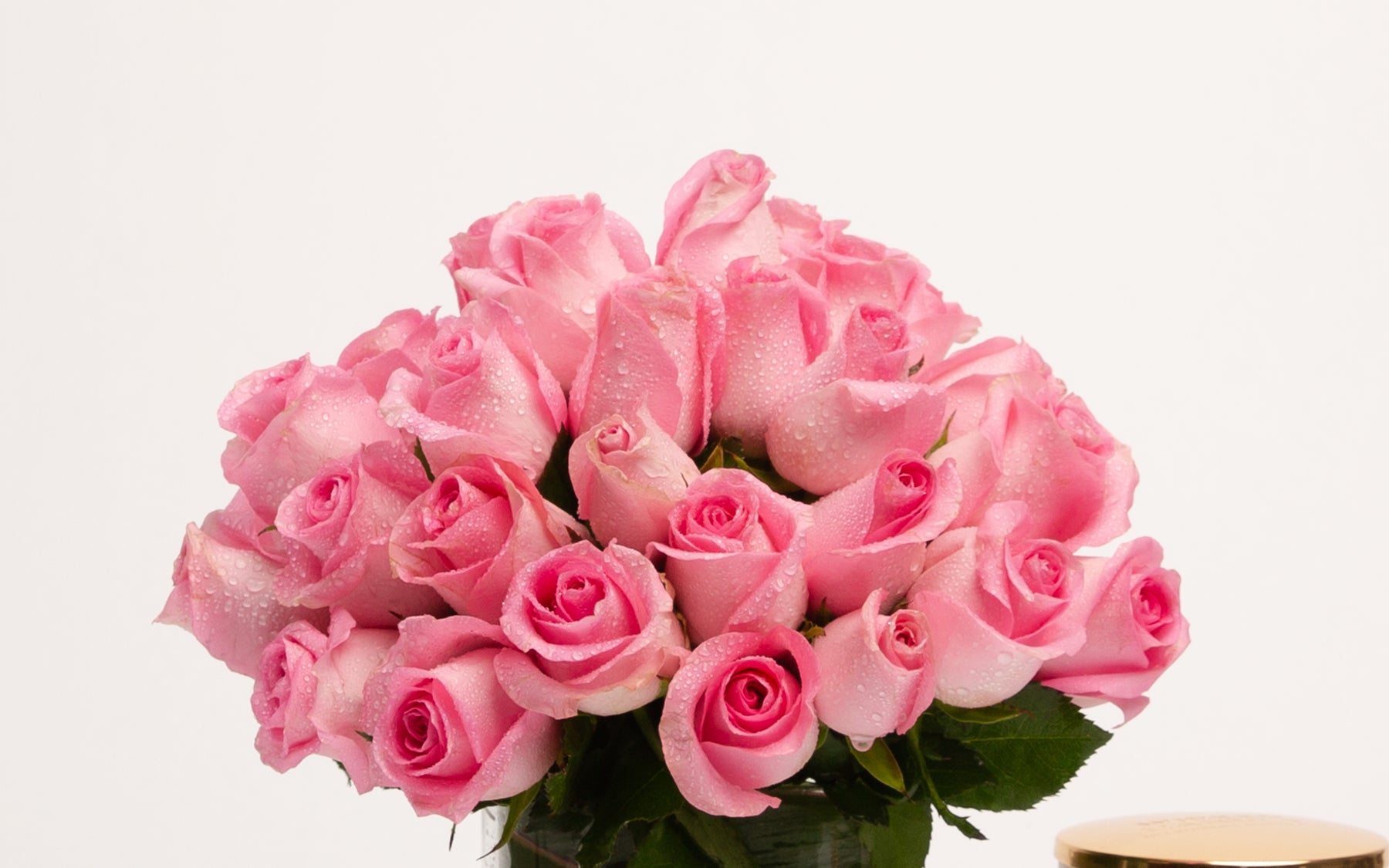 Beautiful posy of pink short stem Roses.